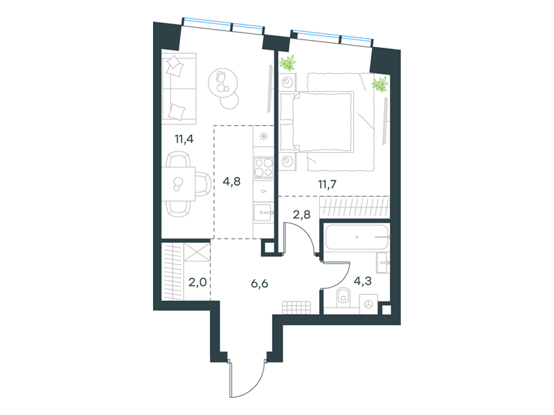 | К14 - "Контраст" | Март 2028 | 1 | 2 | 6 | 6 | 2 | 42.7 | 24 973 789 | без отделки | ![]() | 6 | ||