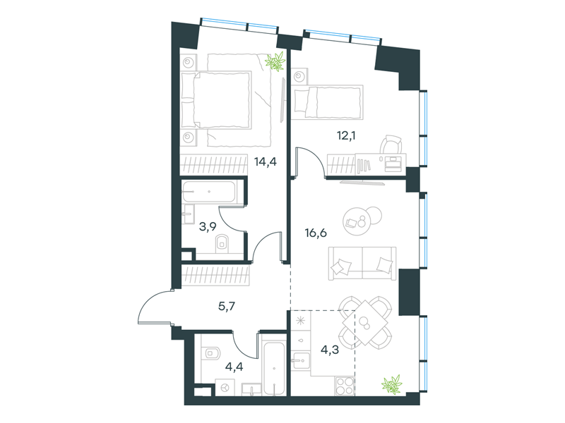 | К14 - "Контраст" | Март 2028 | 1 | 4 | 6 | 6 | 2 | 44.2 | 26 962 933 | без отделки | ![]() | 6 | ||