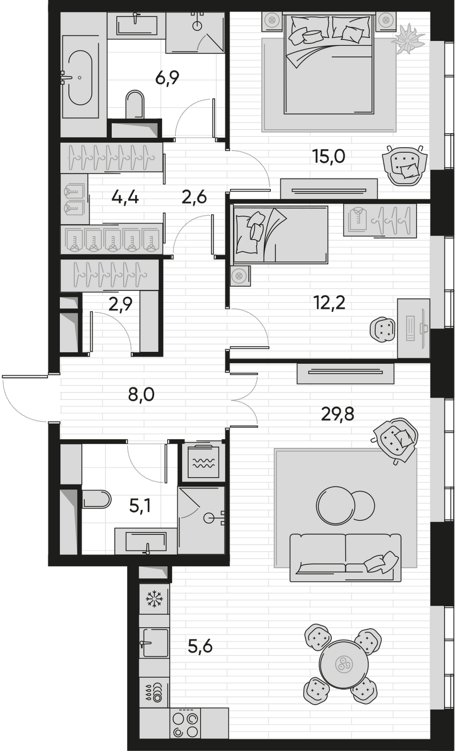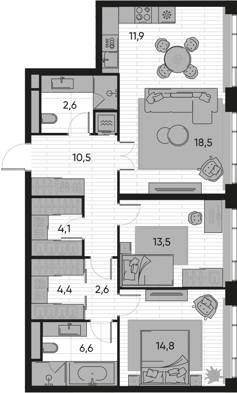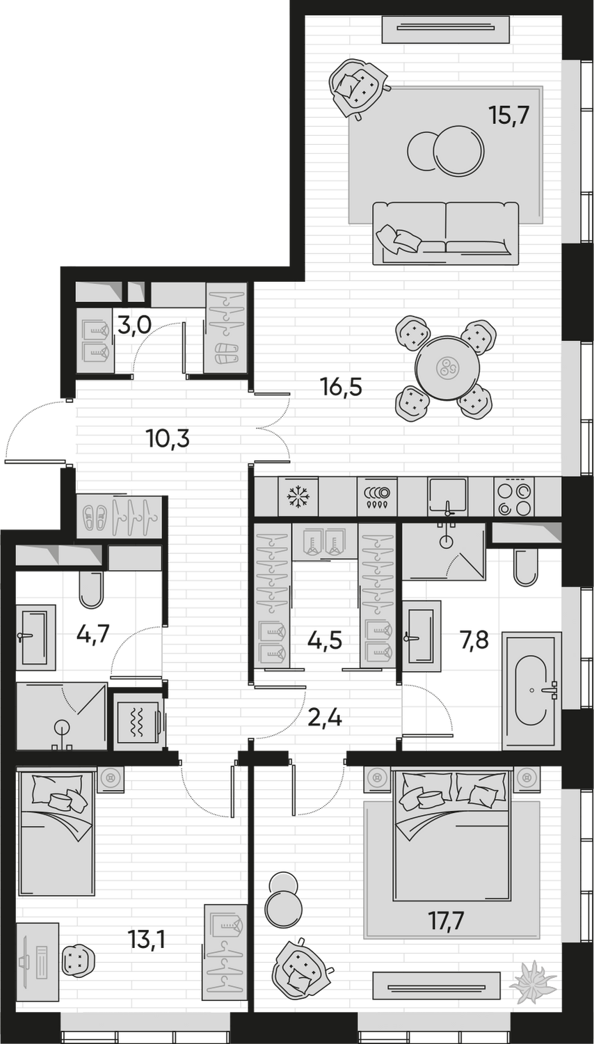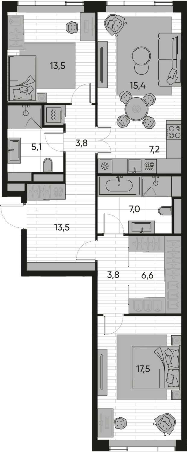 ГлавнаяЖилая недвижимостьЖК Прайд (PRIDE)3-комнатная квартира № 5
