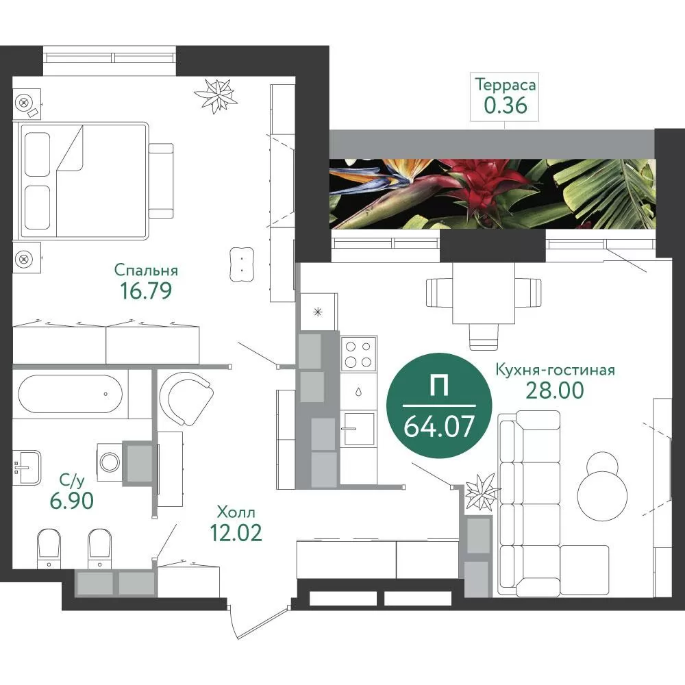 • Высокие потолки и панорамные окна
