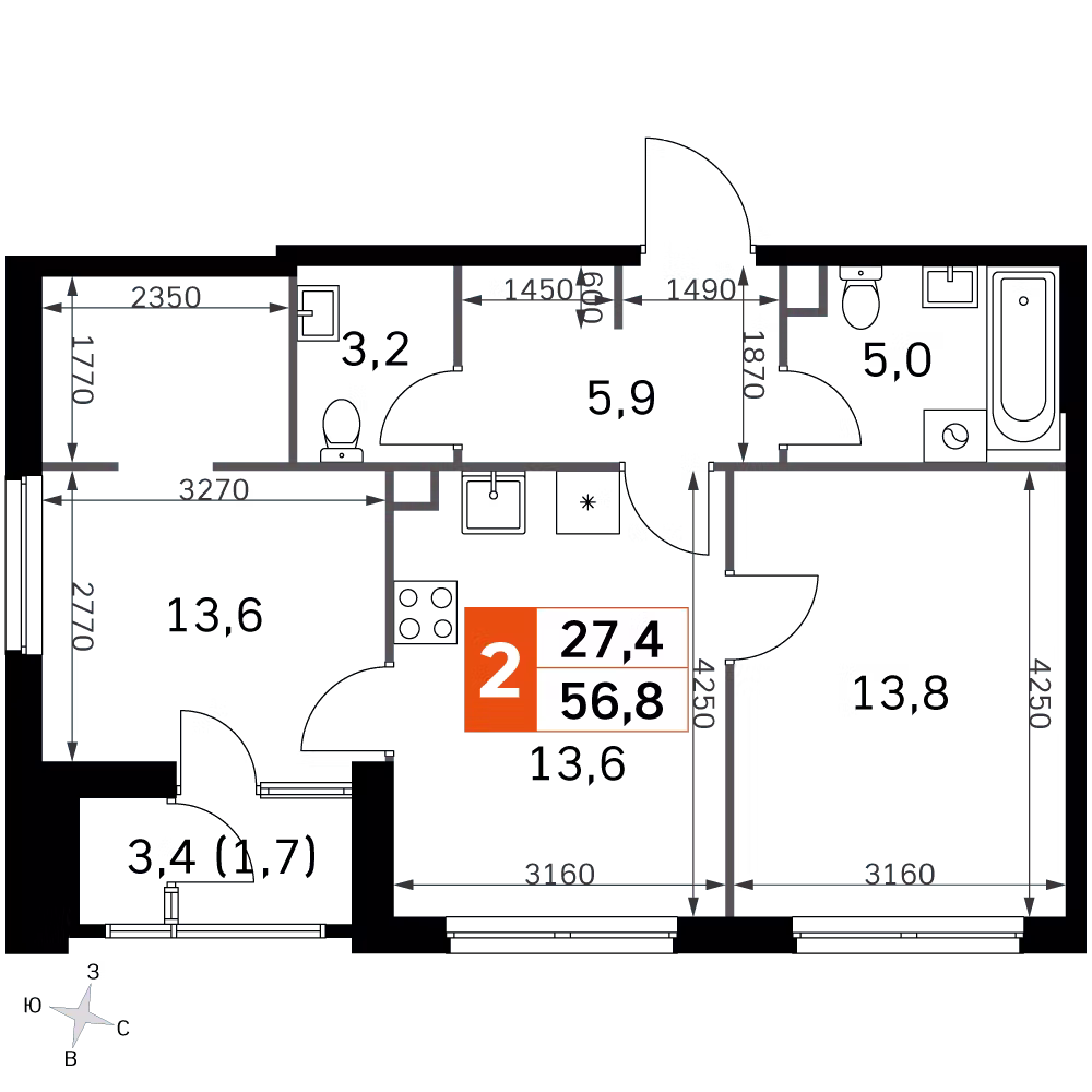 Продажа 3-комнатной квартиры № 7, 55.1 кв.м, этаж 40/43 в ЖК Скай Гарден (Sky Garden)