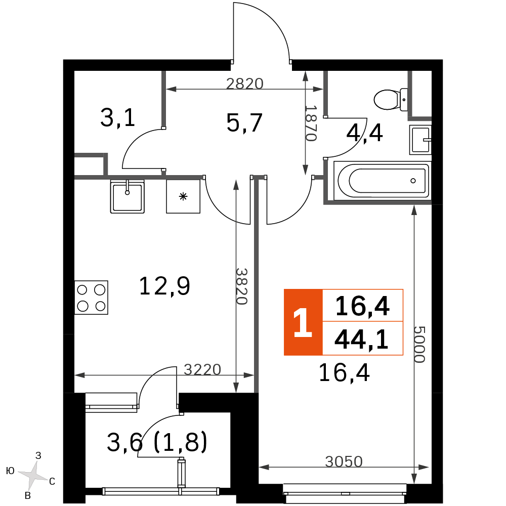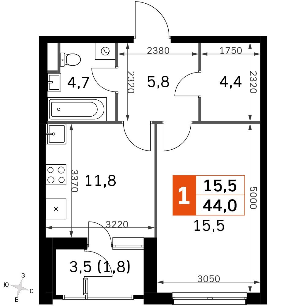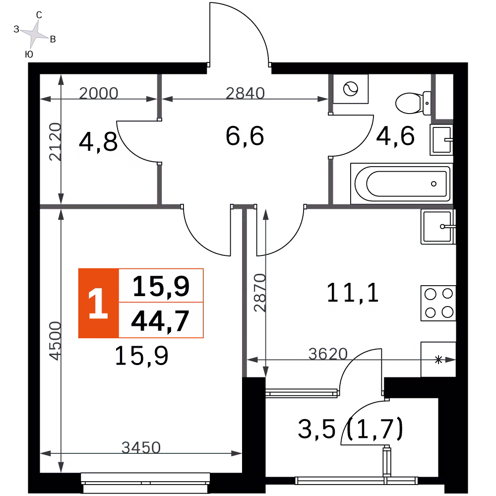 Стартовали скидки 15% на готовые квартиры с отделкой. Теперь купить однокомнатную квартиру 44 кв. м можно с выгодой до 1,7 млн рублей.