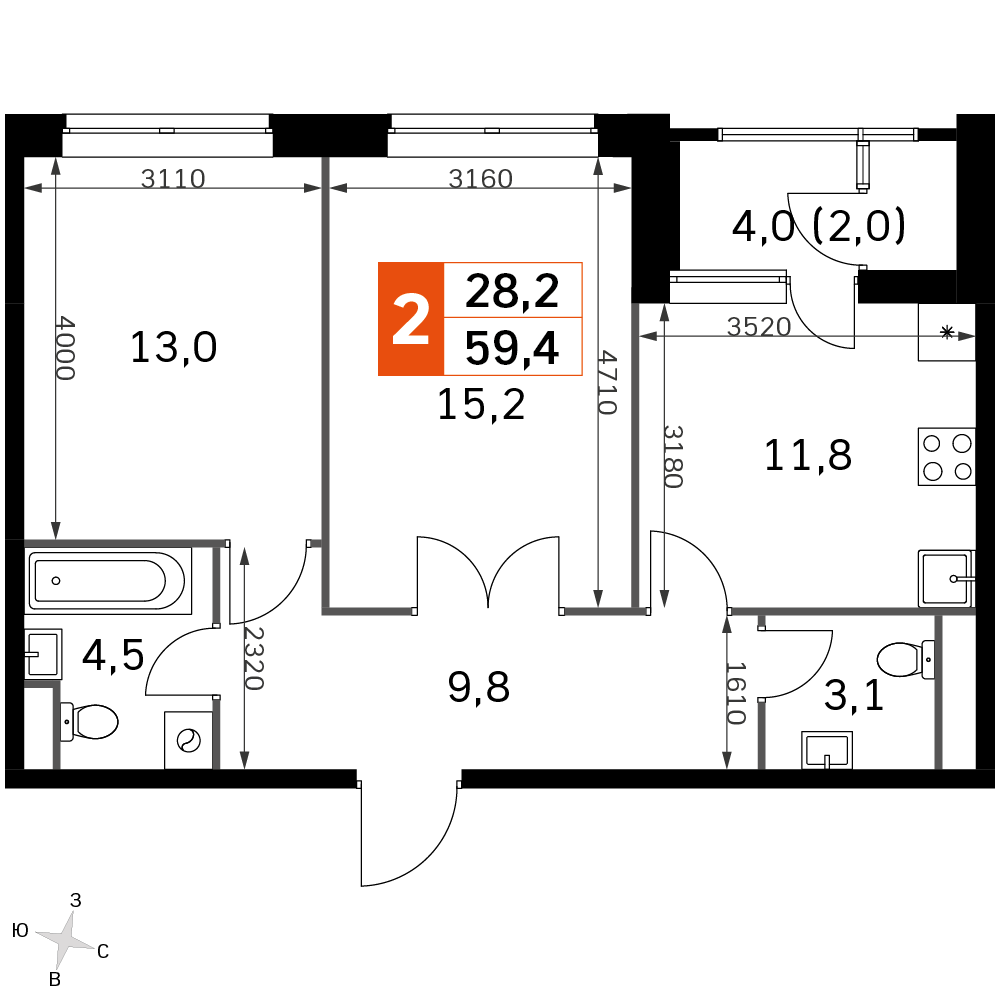 57.2 м²
