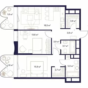 | 3 | Сентябрь 2025 | 1 | 18 | 1 | 1 | 3 | 90.8 | 58 230 280 | без отделки | ![]() | 1 | ||