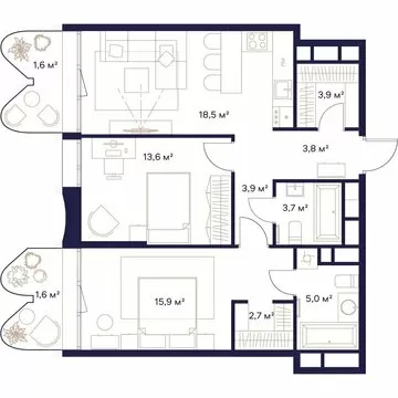 | 2 | Июнь 2026 | 1 | 18 | 5 | 5 | 3 | 78.4 | 56 561 760 | без отделки | ![]() | 5 | ||