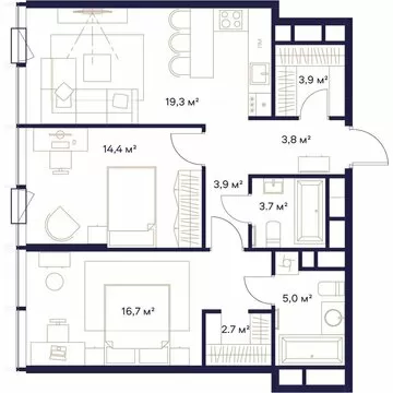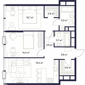 | 4 | Сентябрь 2025 | 1 | 19 | 4 | 4 | 3 | 100.3 | 59 126 250 | без отделки | ![]() | 4 | ||