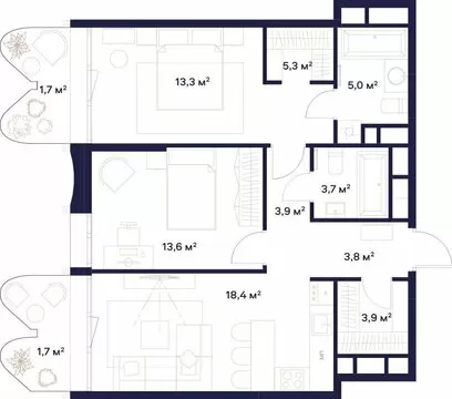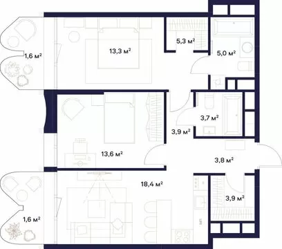 | 2 | Июнь 2026 | 1 | 18 | 3 | 3 | 1 | 49.2 | 35 082 800 | без отделки | ![]() | 3 | ||