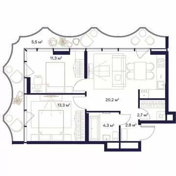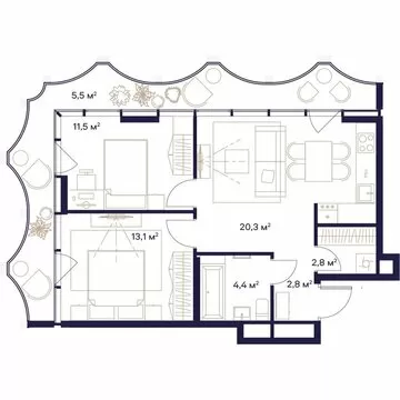 | 3 | Сентябрь 2025 | 1 | 20 | 2 | 2 | 2 | 66.4 | 43 200 640 | без отделки | ![]() | 2 | ||