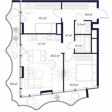 | 1 | Декабрь 2024 | 1 | 12 | 4 | 4 | 3 | 111.5 | 74 570 500 | без отделки | ![]() | 4 | ||