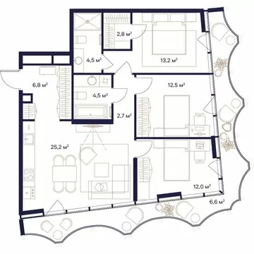 Для кого-то дом — большая семья, для кого-то место уединения, для кого-то пространство для приятных встреч и дружескиех вечеринок. В любом случае 27 видов архитектурных планировок площадью от 29,4 до 186 кв. м., включая квартиры с террасами и пентхаусы на трех последних этажах, смогут не только закрыть любую потребность, но и вывести ощущения от квартиры на новый уровень.