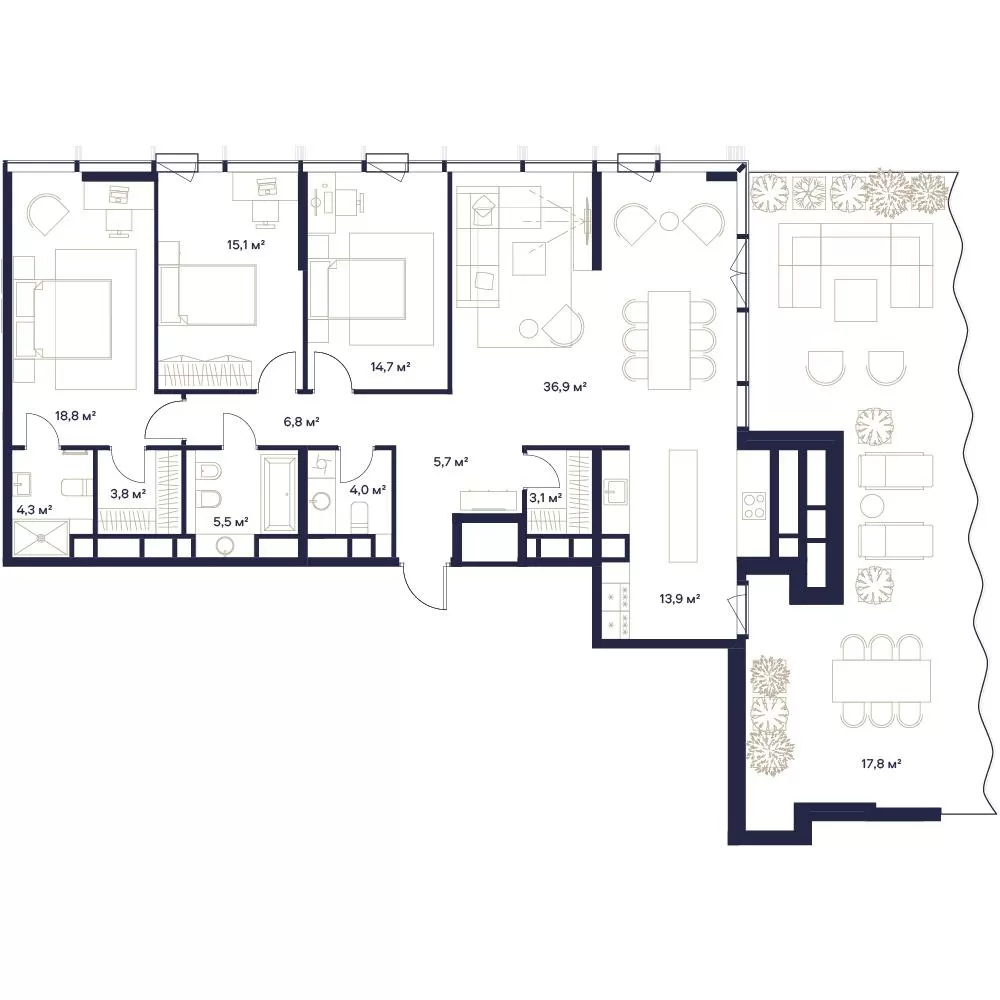 Продажа 4-комнатной квартиры № 5, 142.6 кв.м, этаж 19/23 в ЖК "СОЮЗ"