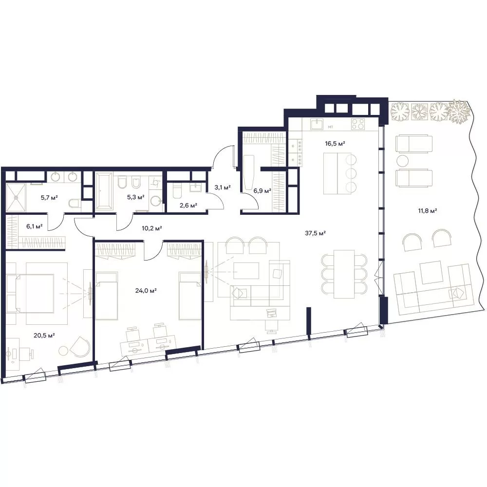 Продажа 3-комнатной квартиры № 1, 146.2 кв.м, этаж 19/23 в ЖК "СОЮЗ"
