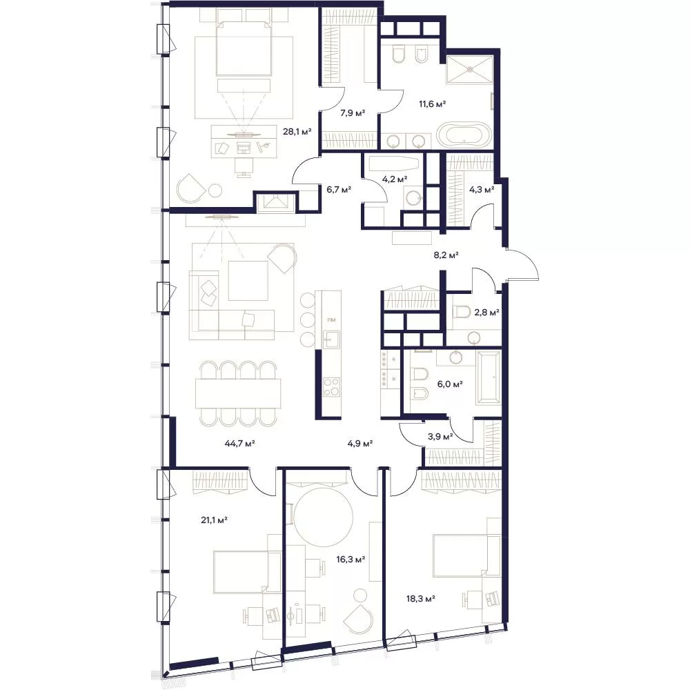 Продажа 4-комнатной квартиры № 2, 184.8 кв.м, этаж 23/23 в ЖК "СОЮЗ"