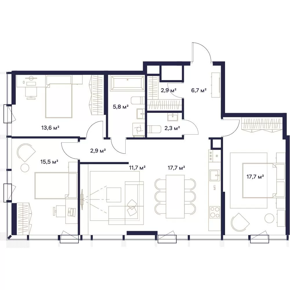Продажа 4-комнатной квартиры № 2, 94.7 кв.м, этаж 20/23 в ЖК "СОЮЗ"