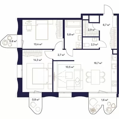 Продажа 3-комнатной квартиры № 10, 90.1 кв.м, этаж 20/23 в ЖК "СОЮЗ"