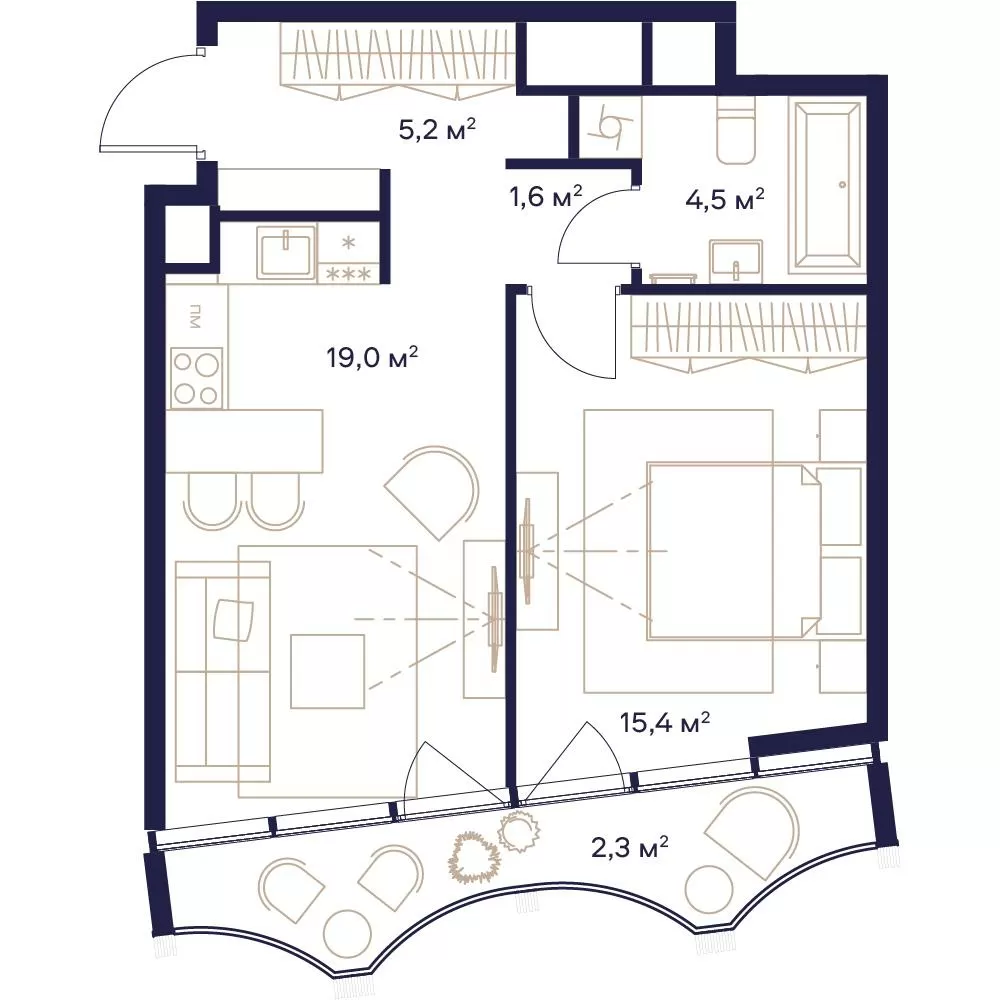 43.1 м² · 1 комната · 19/23 этаж · Сентябрь 2025