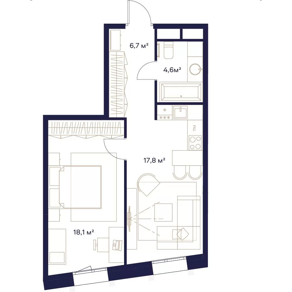 Продажа 1-комнатной квартиры № 4, 47.3 кв.м, этаж 5/23 в ЖК "СОЮЗ"
