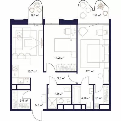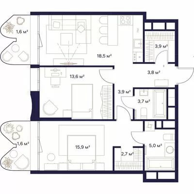 ГлавнаяЖилая недвижимостьЖК "СОЮЗ"2-комнатная квартира № 5