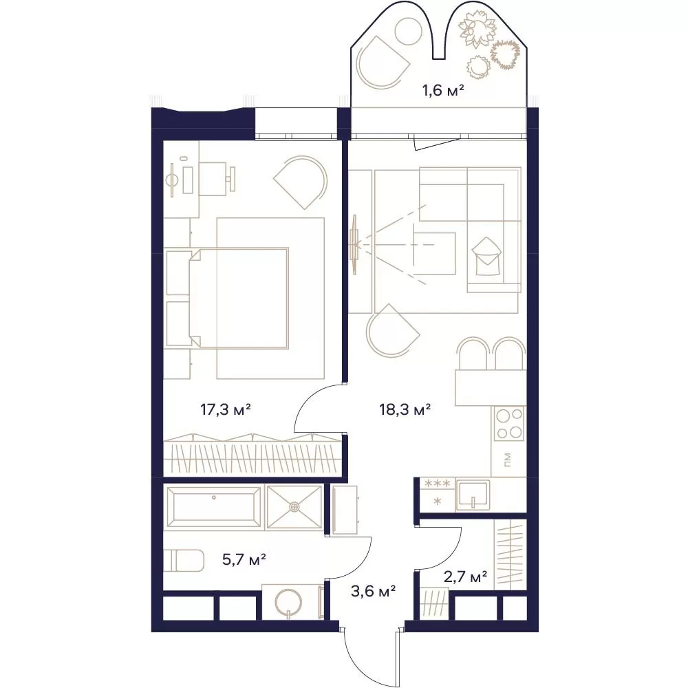 ГлавнаяЖилая недвижимостьЖК «СОЮЗ»1-комнатная квартира № 8