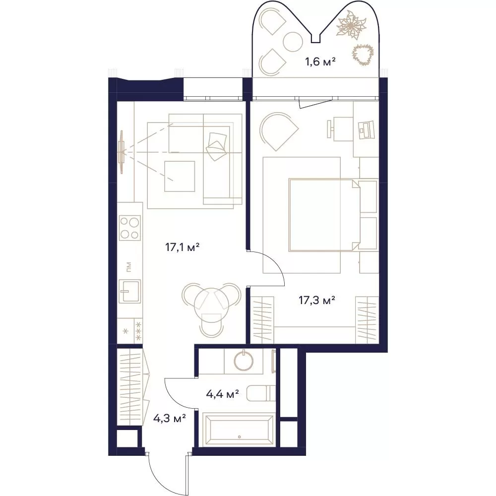 ГлавнаяЖилая недвижимостьЖК "СОЮЗ"1-комнатная квартира № 9