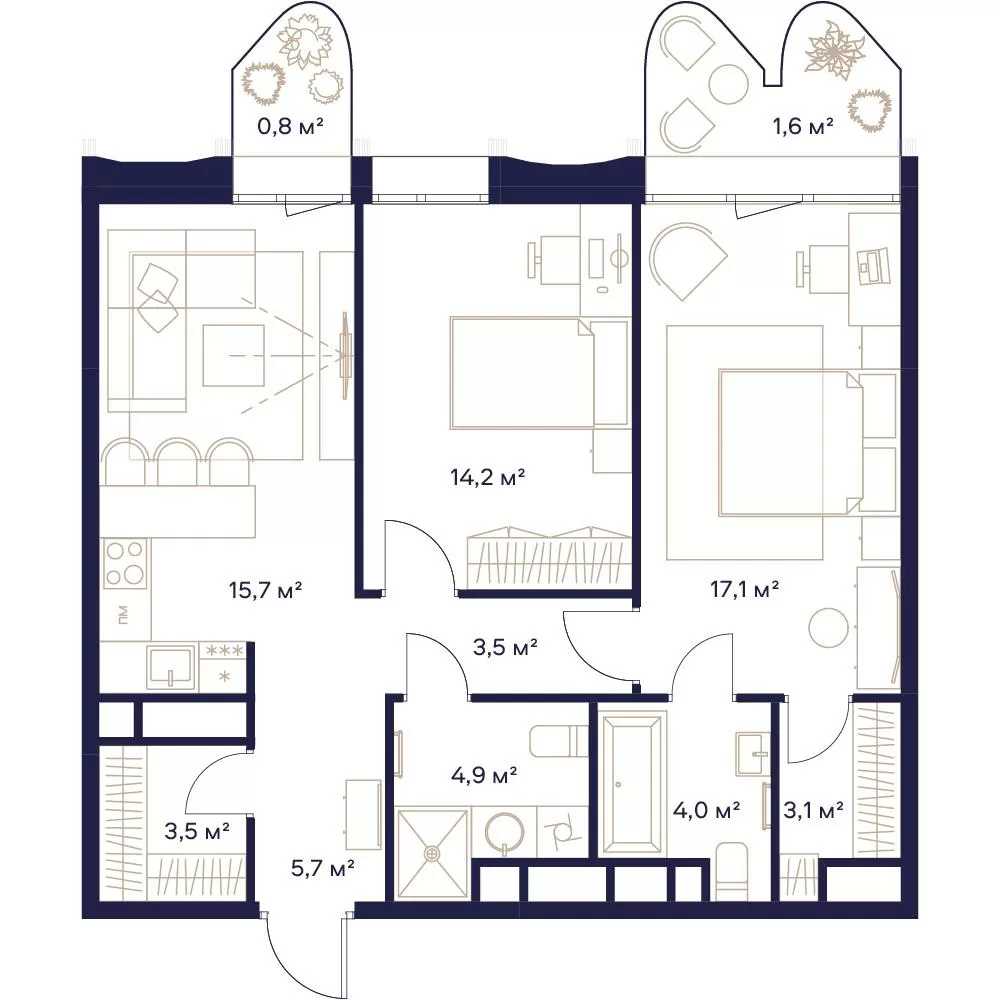 ГлавнаяЖилая недвижимостьЖК «СОЮЗ»2-комнатная квартира № 7