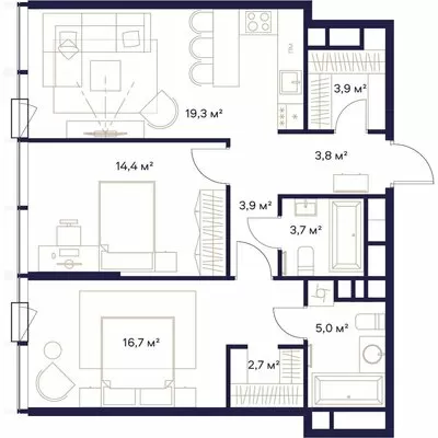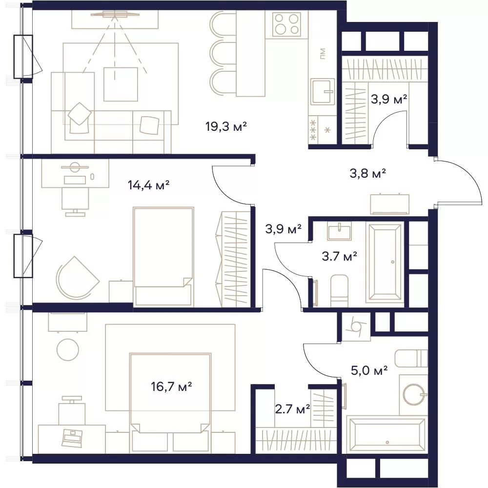 Продажа 2-комнатной квартиры № 5, 72.5 кв.м, этаж 19/23 в ЖК «СОЮЗ»