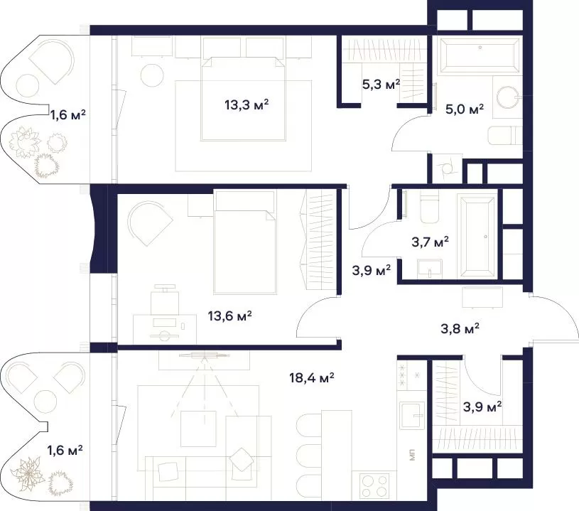 73.8 м² · 2 комнаты · 14/23 этаж · Июнь 2026