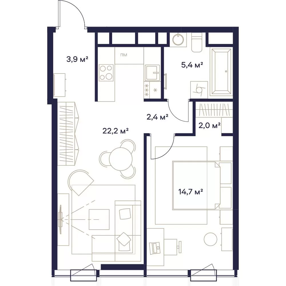 ГлавнаяЖилая недвижимостьЖК "СОЮЗ"1-комнатная квартира № 2