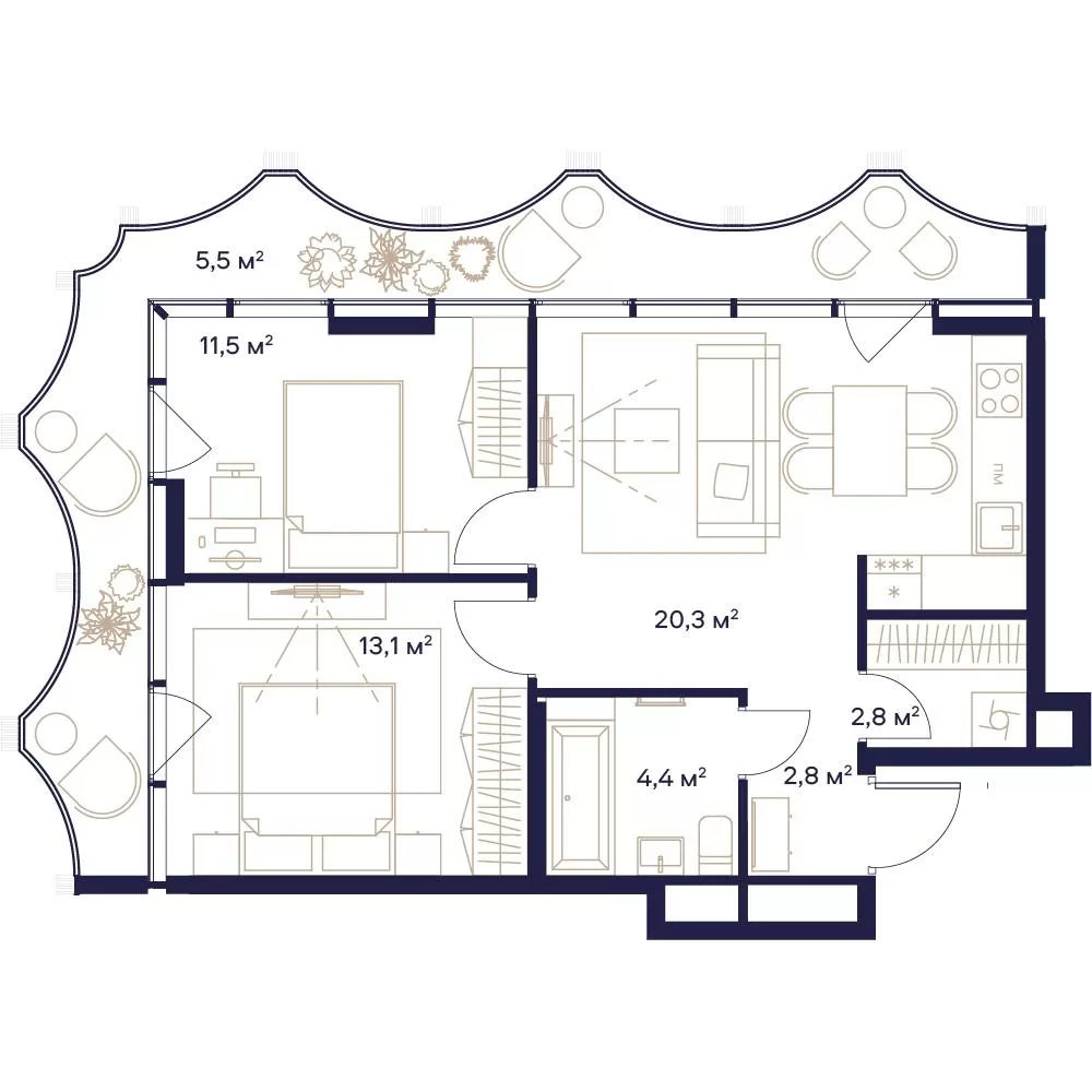 • 40+ эксклюзивных планировок: уникальные предложения: пентхаусы, квартиры с террасами (до 60 м²), мастер-спальни, окна в ванных