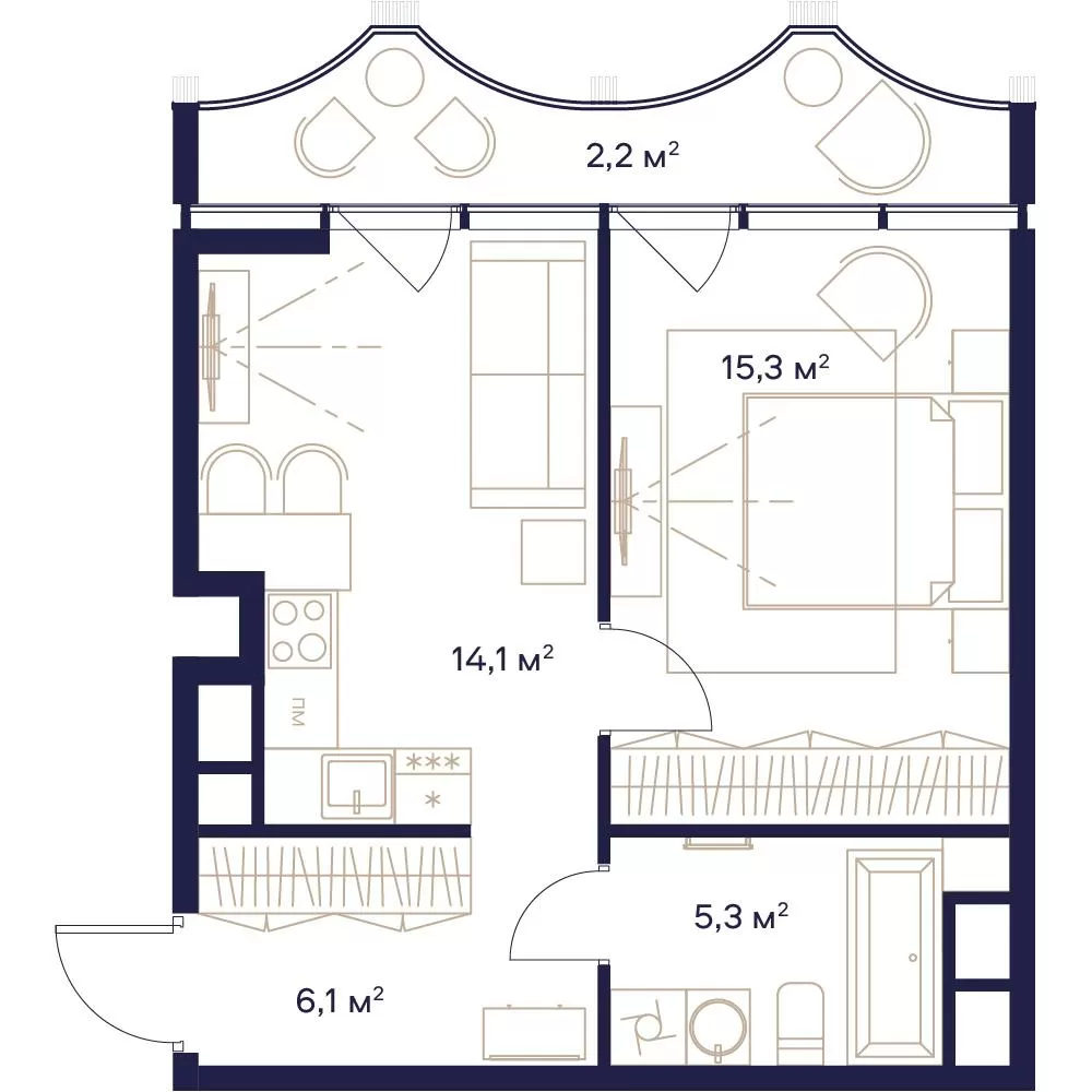 Продажа 1-комнатной квартиры № 8, 43 кв.м, этаж 14/23 в ЖК "СОЮЗ"