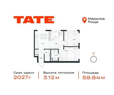 ГлавнаяЖилая недвижимостьЖК Тейт (TATE)2-комнатная квартира № 4