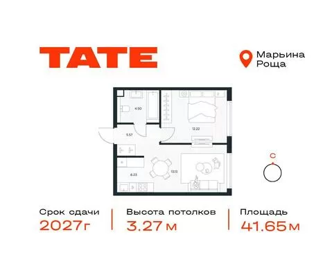 41.1 м² · 1 комната · 22/49 этаж · Июнь 2027