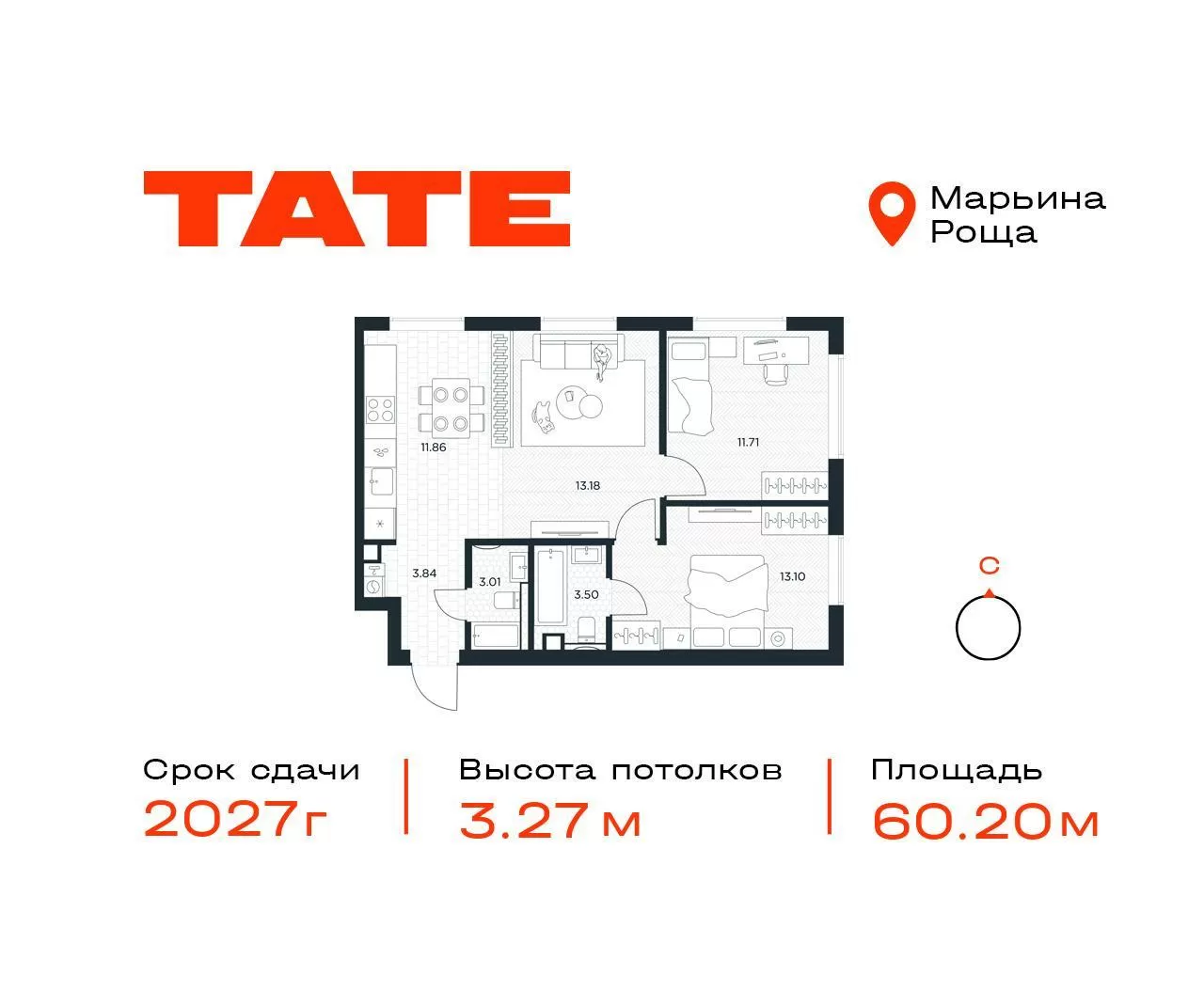 ГлавнаяЖилая недвижимостьЖК Тейт (TATE)2-комнатная квартира № 1