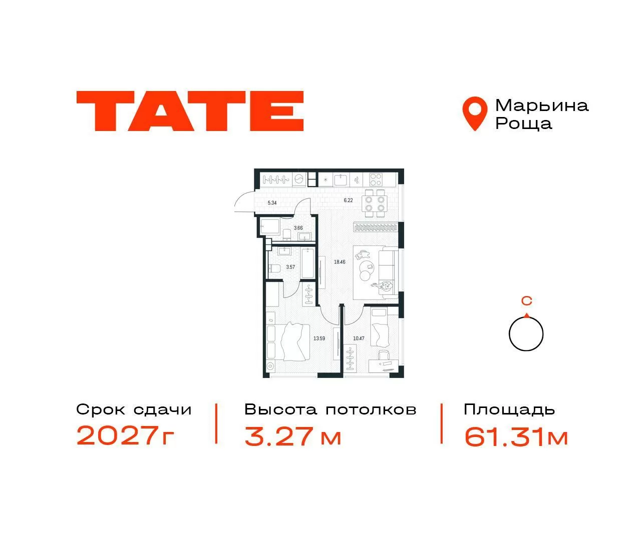 ГлавнаяЖилая недвижимостьЖК Тейт (TATE)2-комнатная квартира № 5