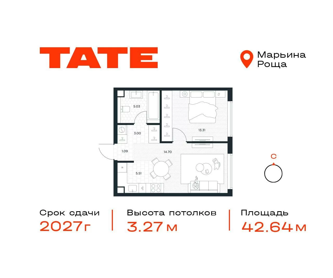 ГлавнаяЖилая недвижимостьЖК Тейт (TATE)1-комнатная квартира № 3