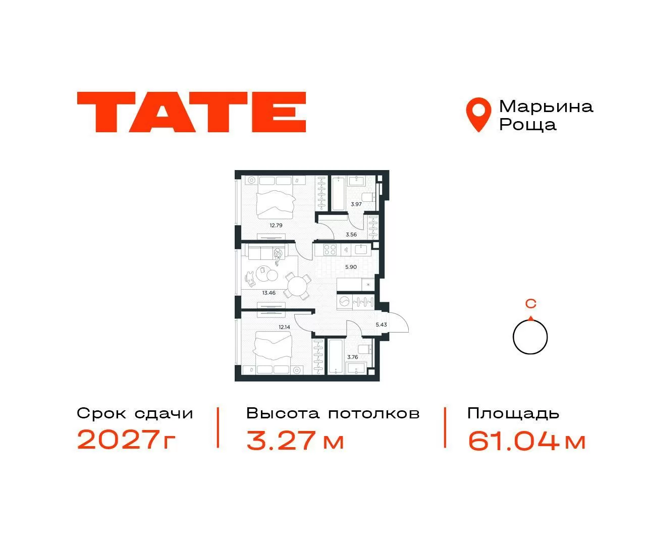 ГлавнаяЖилая недвижимостьЖК Тейт (TATE)2-комнатная квартира № 11