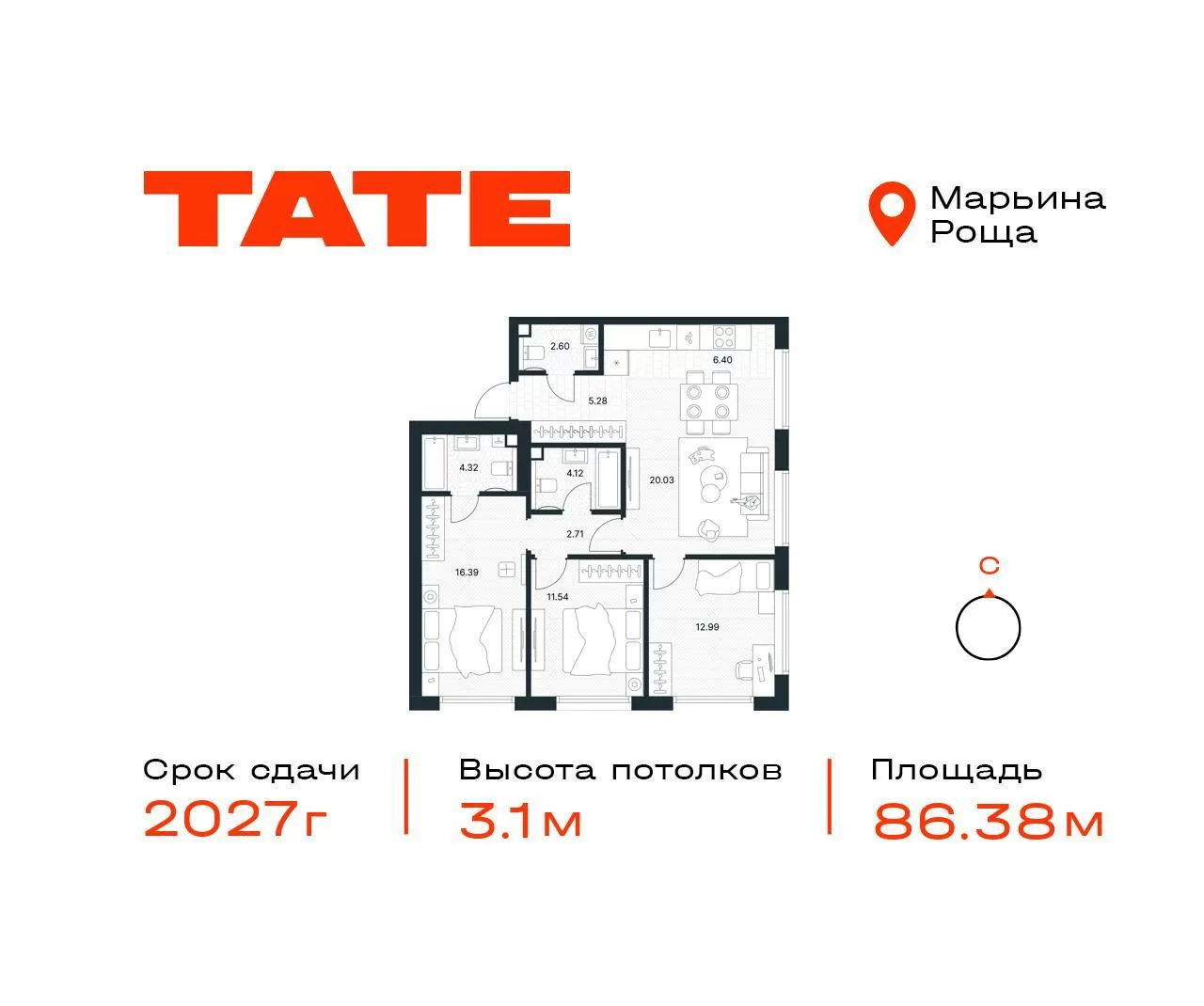Продажа 3-комнатной квартиры № 7, 86.38 кв.м, этаж 35/49 в ЖК Тейт (TATE)
