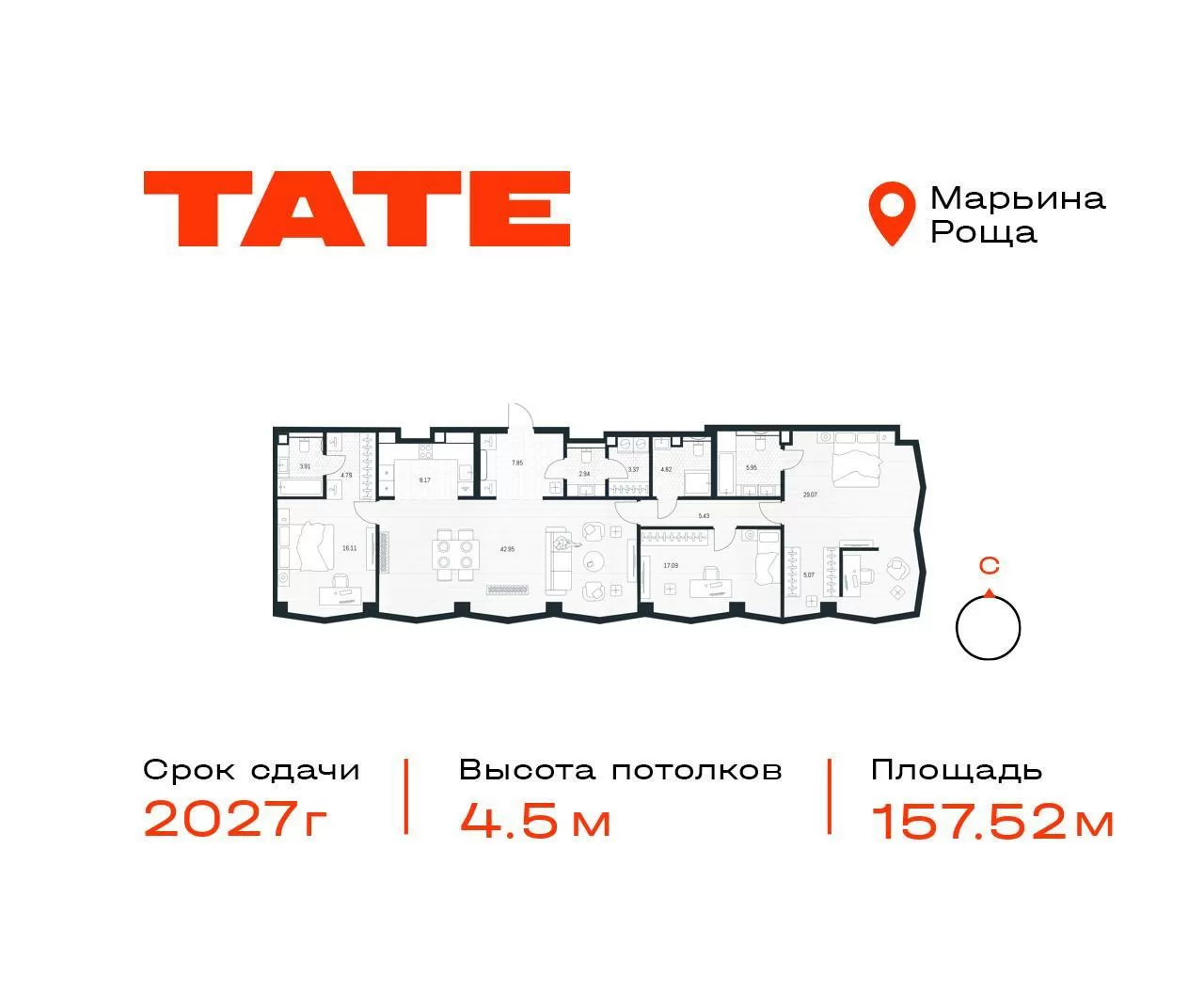 Продажа 3-комнатной квартиры № 1, 157.52 кв.м, этаж 40/49 в ЖК Тейт (TATE)