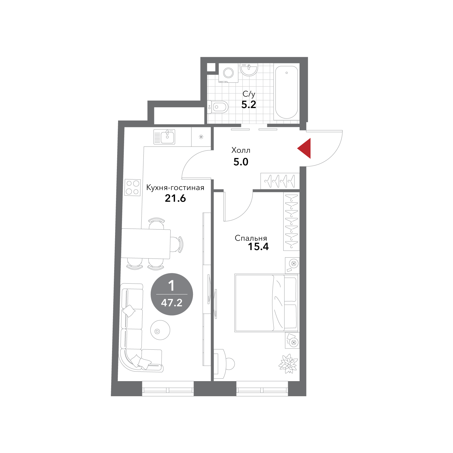 ГлавнаяЖилая недвижимостьЖК "Voxhall" (Воксхолл)1-комнатная квартира № 5