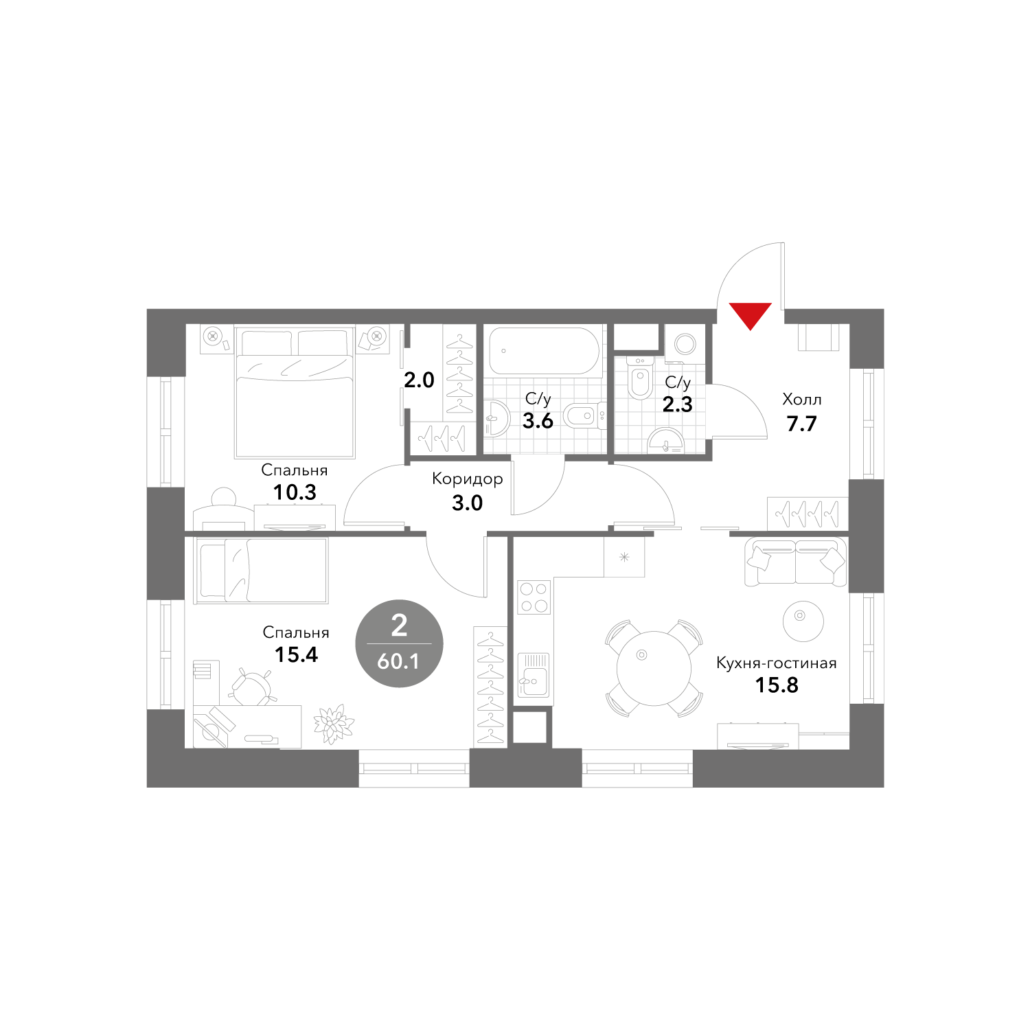 ГлавнаяЖилая недвижимостьЖК "Voxhall" (Воксхолл)2-комнатная квартира № 2