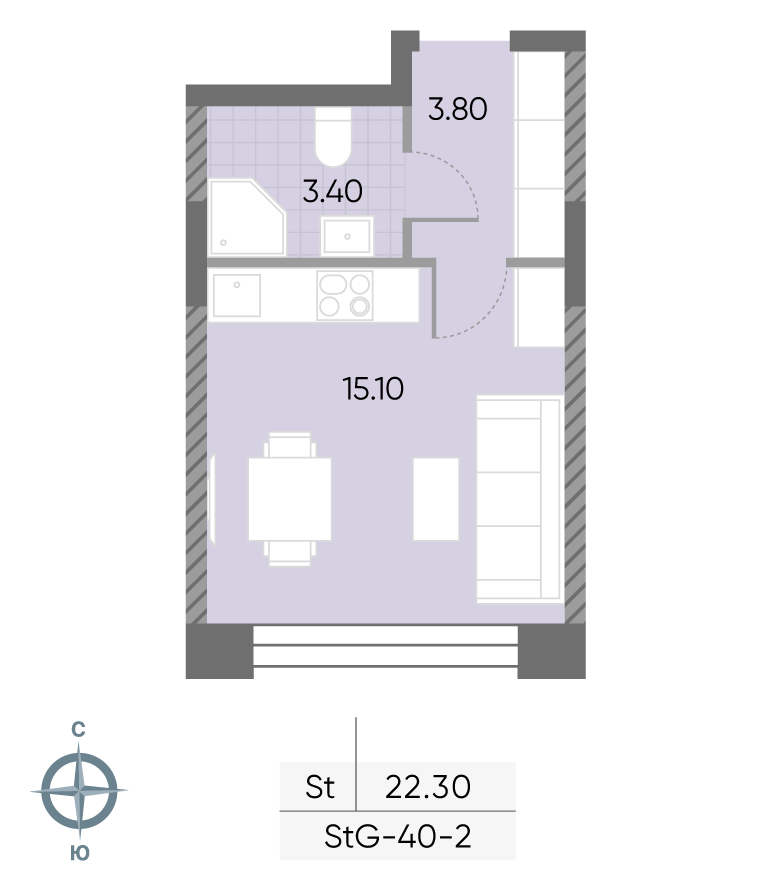 22.1 м² · 1 комната · 3/30 этаж · Декабрь 2026