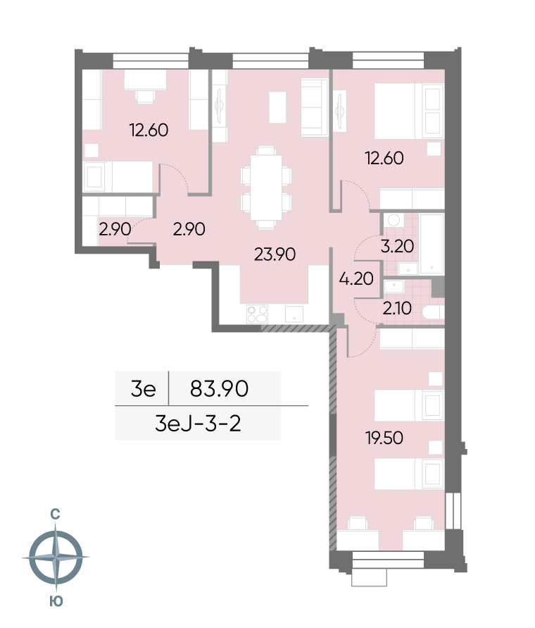 | 2 | Декабрь 2026 | 3 | 2 | 1 | 1 | 3 | 83.9 | 35 930 258 | без отделки |  | 1 | ||
