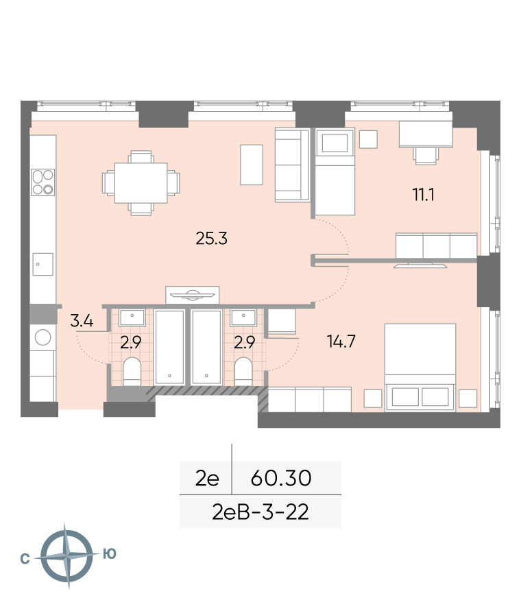 | 2 | Декабрь 2026 | 2 | 7 | 3 | 3 | 1 | 22.3 | 11 305 230 | без отделки |  | 3 | ||