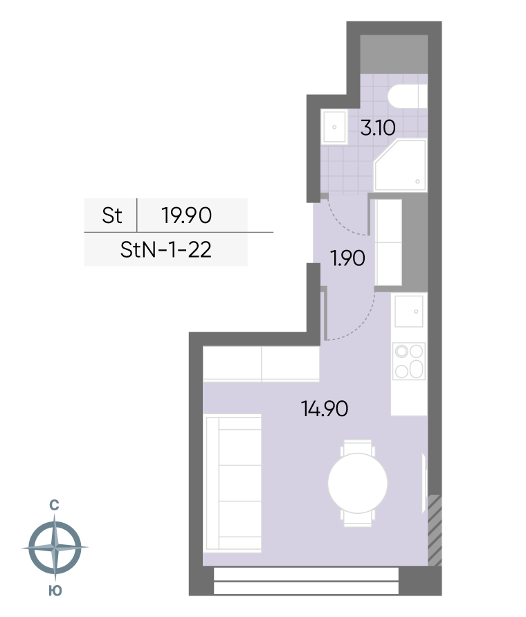 | 2 | Декабрь 2026 | 5 | 3 | 19 | 19 | 1 | 19.9 | 10 849 221 | без отделки |  | 19 | ||
