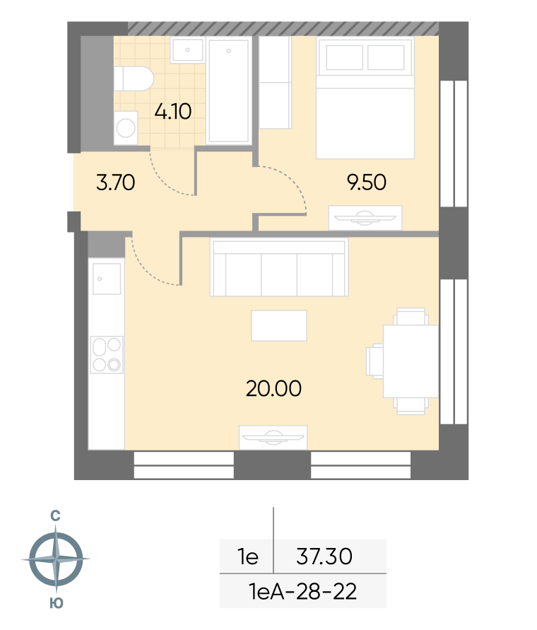 37.5 м² · 1 комната · 4/30 этаж · Декабрь 2026