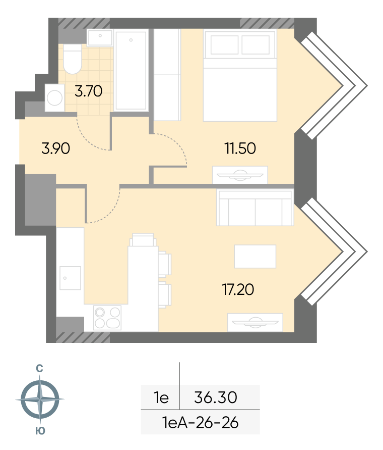 37.5 м² · 1 комната · 4/30 этаж · Декабрь 2026