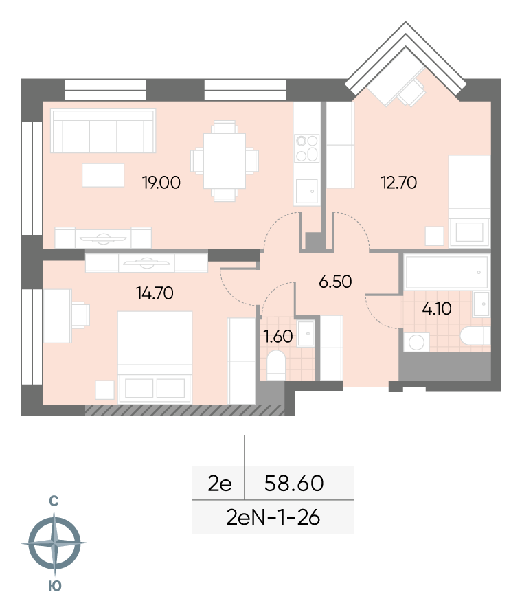 57.8 м² · 2 комнаты · 4/30 этаж · Декабрь 2026