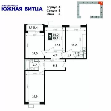 | 7 | Сентябрь 2024 | 3 | 14 | 4 | 4 | 3 | 78.4 | 19 404 000 | без отделки | ![]() | 4 | ||