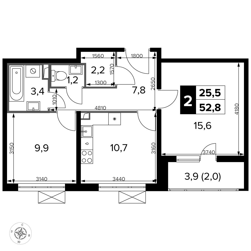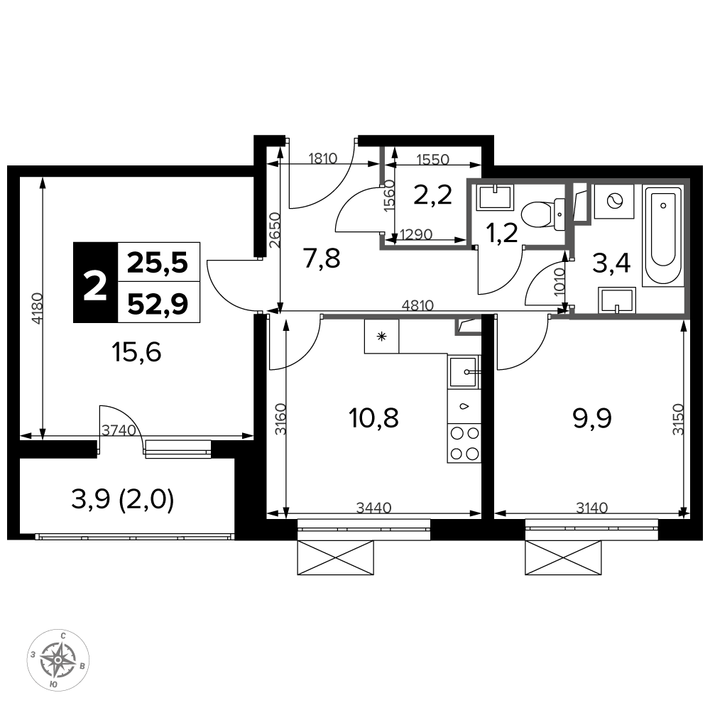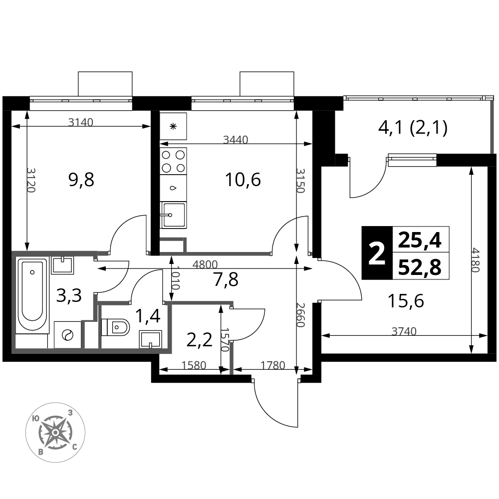 | 6 | Апрель 2022 | 4 | 2 | 2 | 2 | 1 | 22.9 | 8 667 650 | без отделки | ![]() | 2 | ||