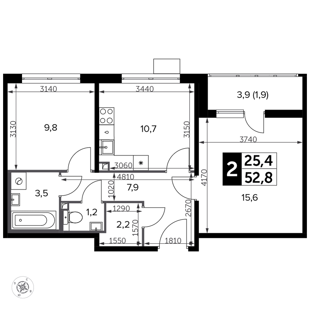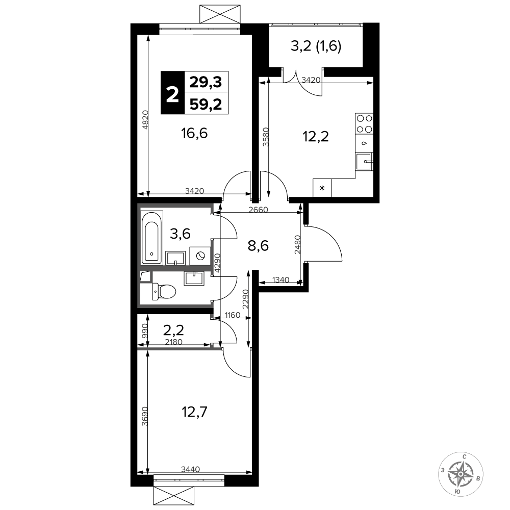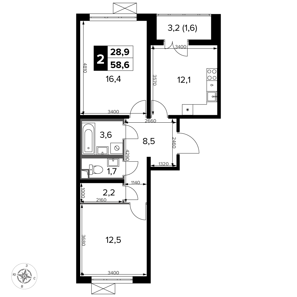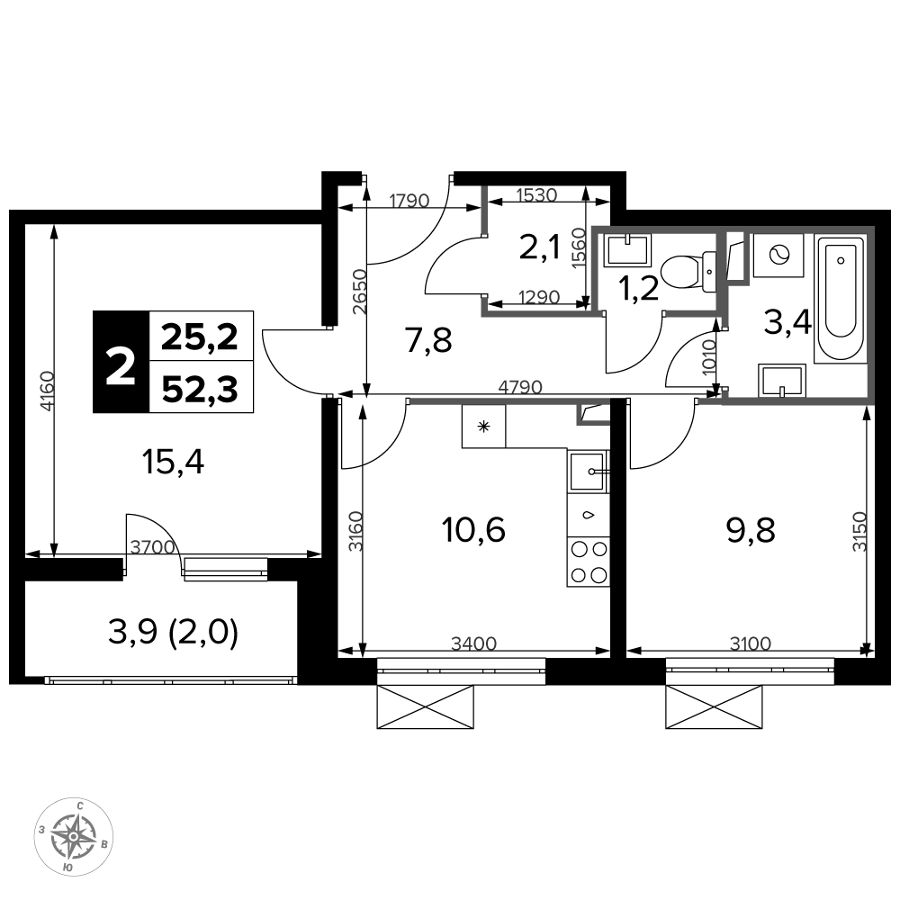 | 6 | Апрель 2022 | 4 | 2 | 2 | 2 | 1 | 22.9 | 8 667 650 | без отделки | ![]() | 2 | ||